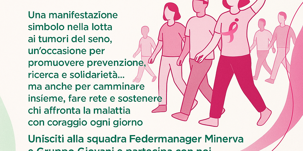 | Federmanager Gruppo Minerva e Gruppo Giovani prenderà parte alla tappa napoletana della Race for the Cure, manifestazione che si svolge da venerdì 7 a domenica 9 novembre 2025 a Napoli e che è parte del circuito “Race Campania” di Komen Italia, con attività sportive, salute, cultura e prevenzione.